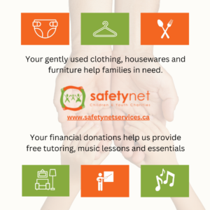 We support financially disadvantaged families by providing essential items like gently used clothing, housewares, furniture, toiletries, and diapers, alleviating their financial burden so they can focus on other needs. Our goal is to break the cycle of poverty by offering free tutoring and music lessons, delivering both immediate relief and long-term support for a brighter future. We serve a diverse range of people, including refugees, asylum seekers, and those in the community facing economic hardships. For example, a single mother from Halton received clothes and essentials from us, allowing her to use her funds for food and housing. Today, she is self-sufficient, runs her own business, and gives her time to volunteer at Safetynet.
